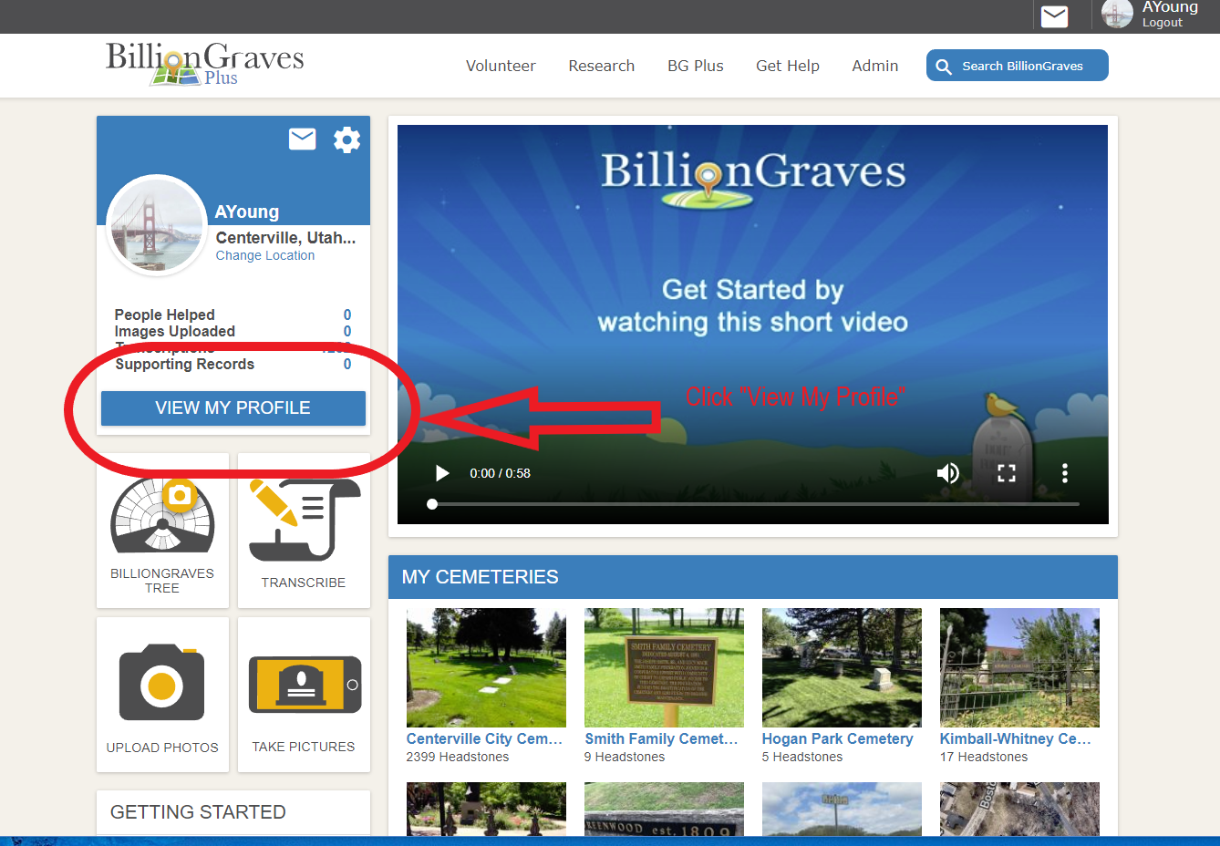 #3 Under My Images click on an image associated with the cemetery. (Do Not click on the cemetery name or you will be taken to the main cemetery page.)