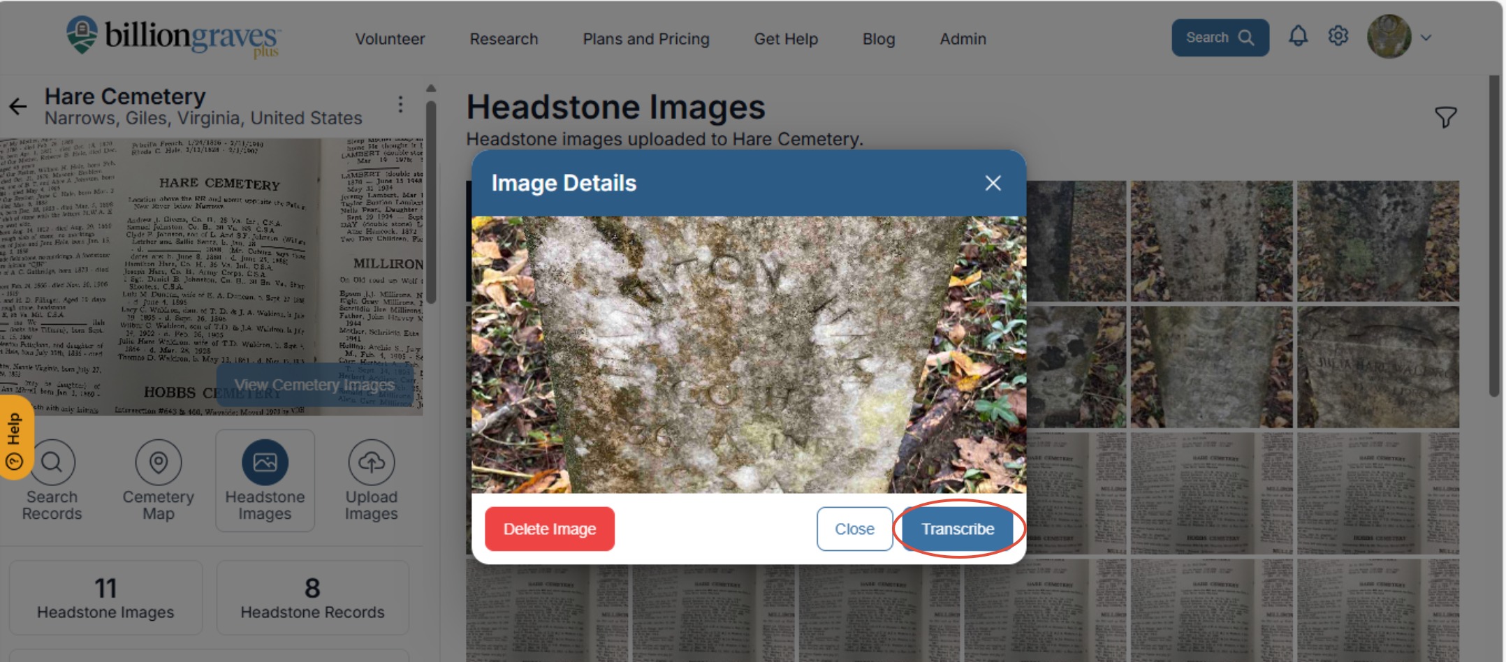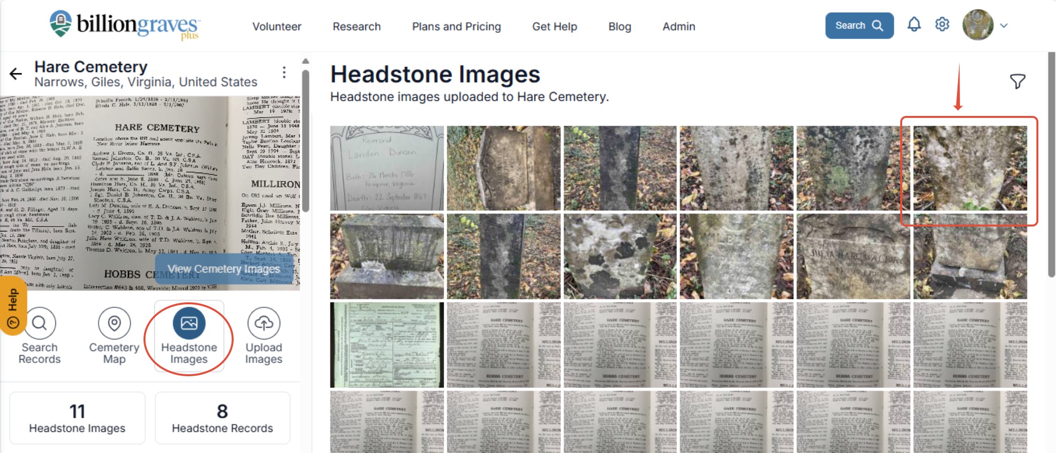 Step 5: Click on the "Headstone Images" tab. Click on the photo uploaded in the headstone images album.