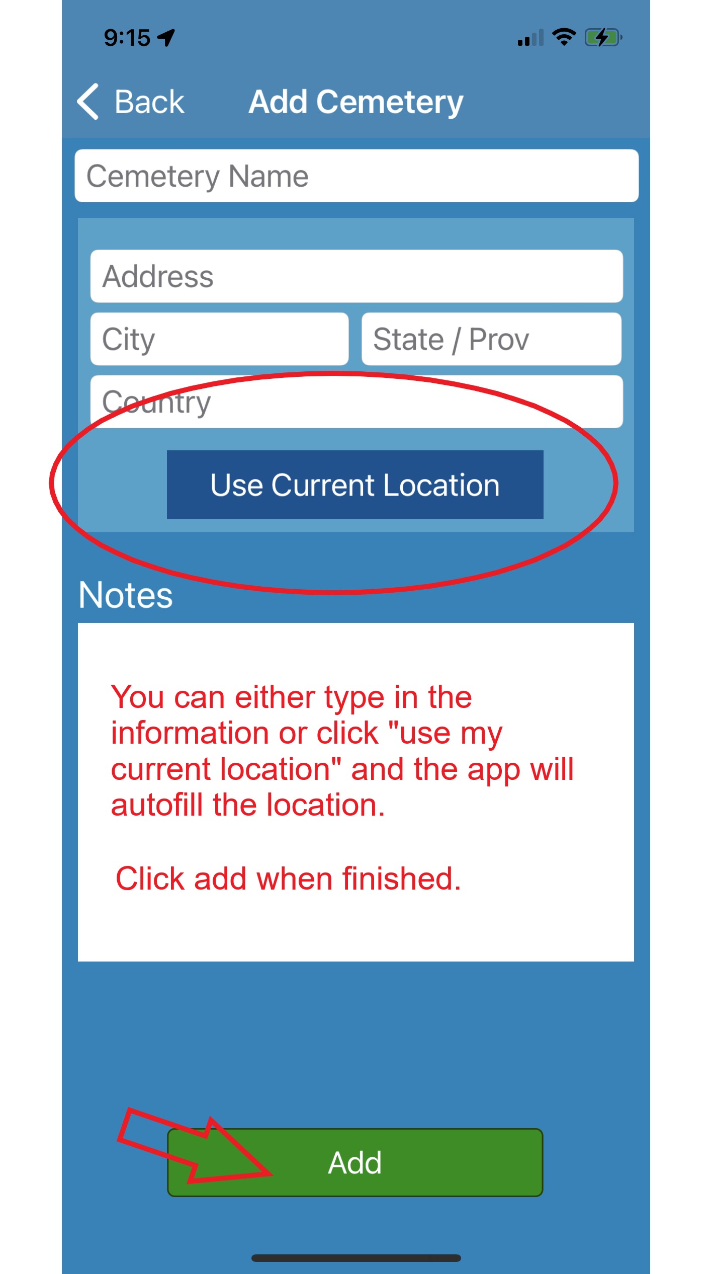Click HERE to learn how to add a new cemetery using an Android device